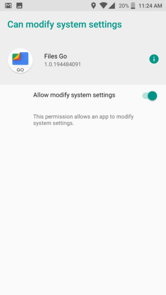 • Kemudian, berikan izin terhadap aplikasi untuk dapat memodifikasi sistem terlebih dahulu. Sistem yang dimaksud adalah fitur hotspot, sehingga Files Go mampu mengirimkan atau menerima data melalui koneksi WiFi.