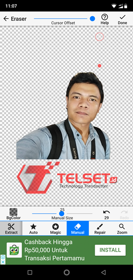 - Kami merekomendasikan untuk menggunakan aplikasi Background Eraser untuk melakukan hal tersebut.