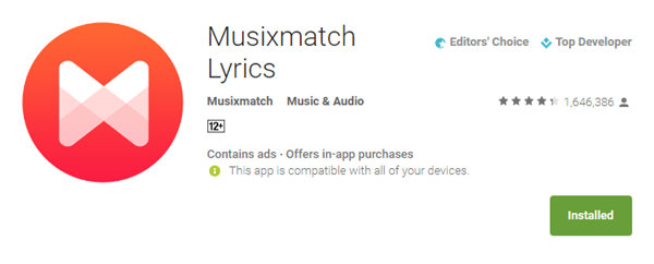 - Pertama yang harus dilakukan adalah dengan install aplikasi Musixmatch – Lyrics & Music yang tersedia di Google Play Store.