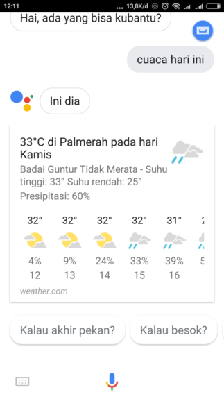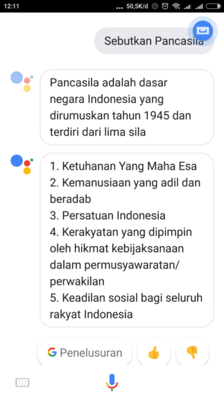 - Ucapkan perintah yang ingin Anda berikan ke Google Assistant seperti “cuaca hari ini”, “sebutkan Pancasila”, “bisakah kamu bernyanyi”, dan perintah lainnya.