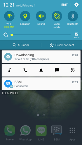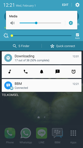 - Coba swipe bar notifikasi Anda dan akan tampil berbagai pengaturan volume yang ada sesuai yang diatur sebelumnya. Tekan salah satu tombol volume, maka Anda bisa mengatur volume pada Android tanpa harus menekan tombol fisik volume di smartphone.