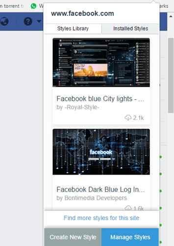 - Setelah itu, buka halaman Facebook Anda dan otomatis ikon dari Stylish akan menyala. Tekan tombol Stylish, dan terlihat banyak tema-tema untuk bisa Anda terapkan sebagai tampilan baru Facebook di Style Library.