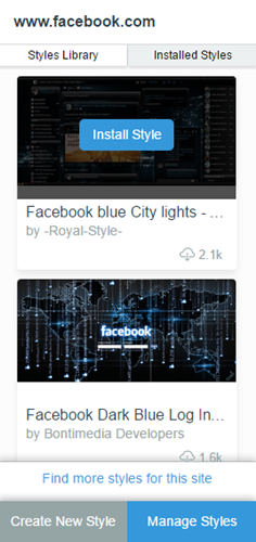 - Tunggu beberapa saat dan halaman Facebook Anda akan berubah sesuai tema yang di pilih. Untuk memilih tema yang telah di-install, Anda bisa masuk ke bagian Installed Styles.