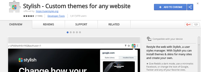 - Pertama yang harus dilakukan adalah download dan install ekstensi bernama Stylish yang tersedia di Chrome Web Store dengan menekan tombol Add to Chrome.