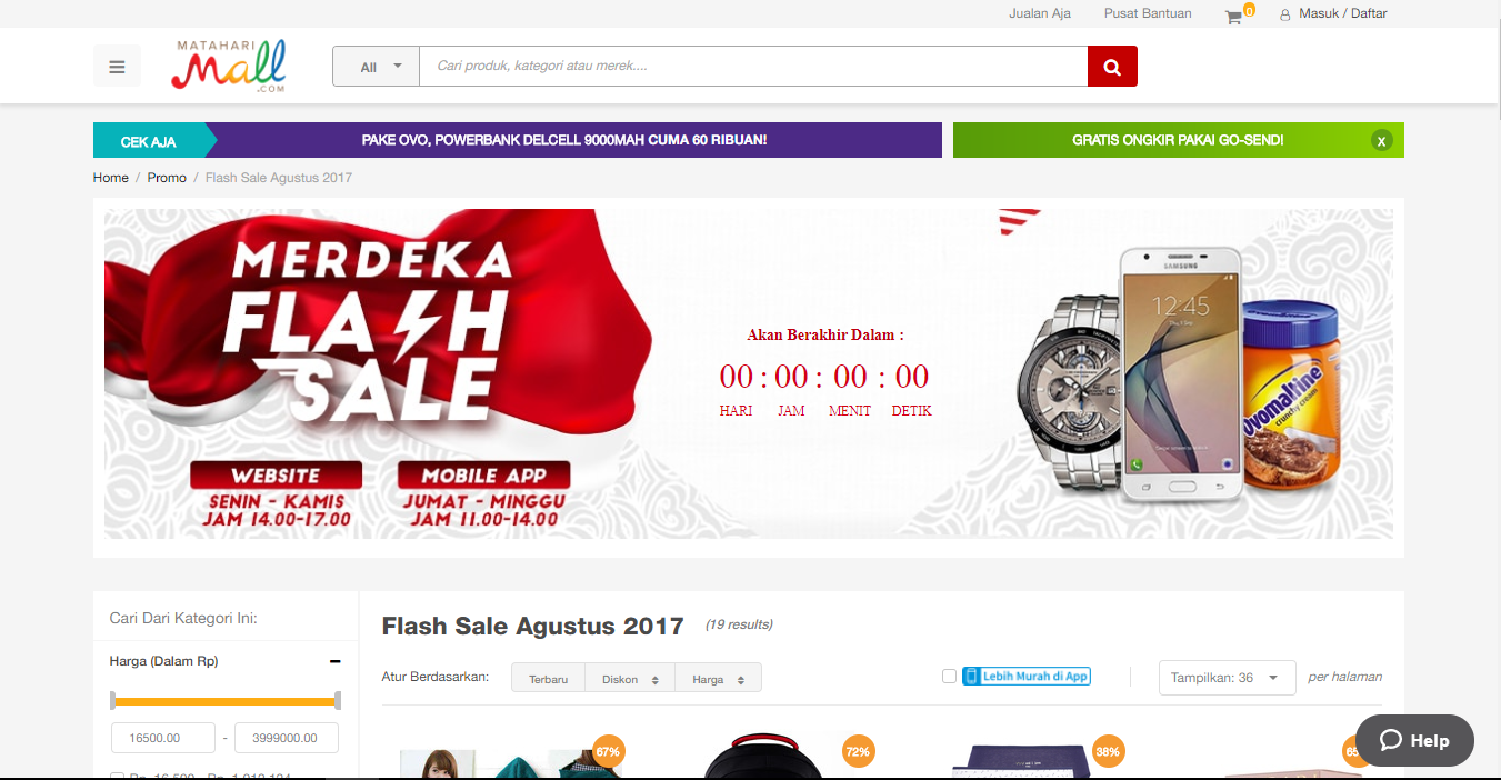Untuk menyambut kemerdekaan Indonesia pada tahun 2017, MatahariMall menggelar acara flash sale spesial kemerdekaan. Untuk kategori, mereka memberikan kategori yang cukup luas bagi para penggunanya.