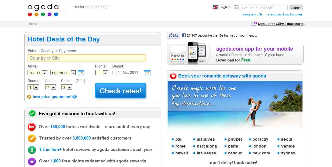 “Kami tahu keduanya penting untuk pelanggan kami,” kata John Brown,Chief Operating Officer Agoda.com seperti dilansir dari Telecomasia. “Kebanyakan pelaku bisnis perhotelan memahami itu, dan sebagian besar properti di Agoda.com menawarkan harga kamar termasuk Wi-Fi, sarapan atau keduanya,” katanya.