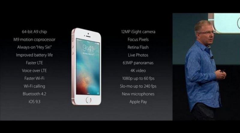 Sementara untuk fitur kamera, Apple menggunakan iSight camera 12MP yang dilengkapi focus pixel dan two-tone flash, yang juga bisa dijumpai pada kamera iPhone 6s dan 6s Plus.