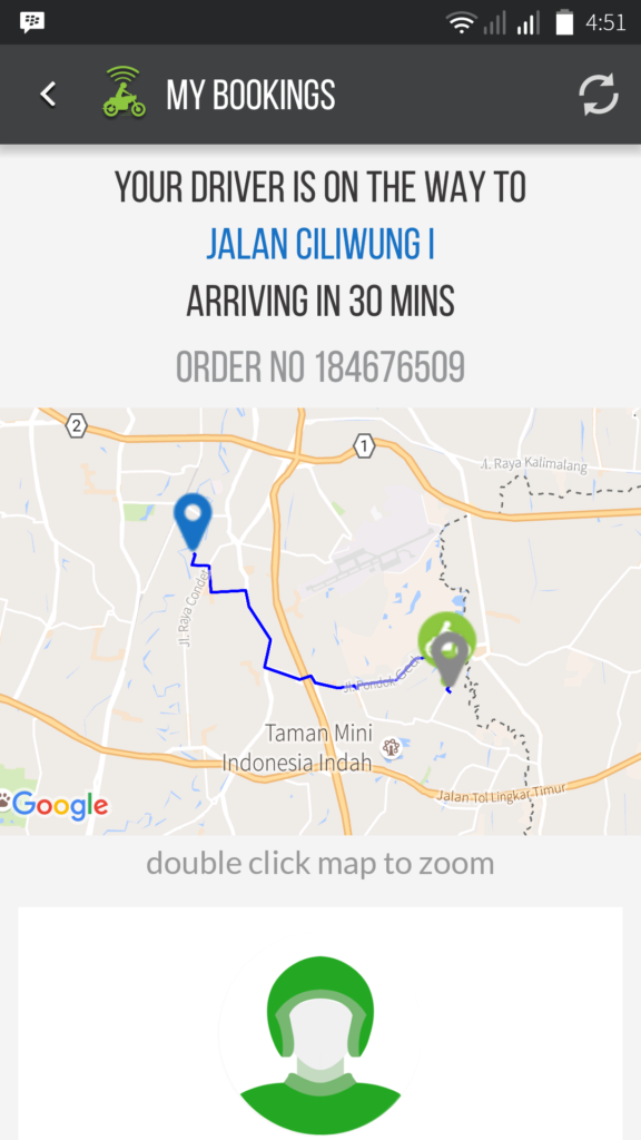 Namun tanda-tanda tidak beres mulai nampak ketika IF coba mengecek keberadaan pengemudi Gojek sekitar pukul 11.00. IF bingung karena GPS tidak jalan. Padahal estimasi waktu tetap sama, 30 menit. Sementara hitungannya driver Gojek sudah jalan sekitar 10 menitan.