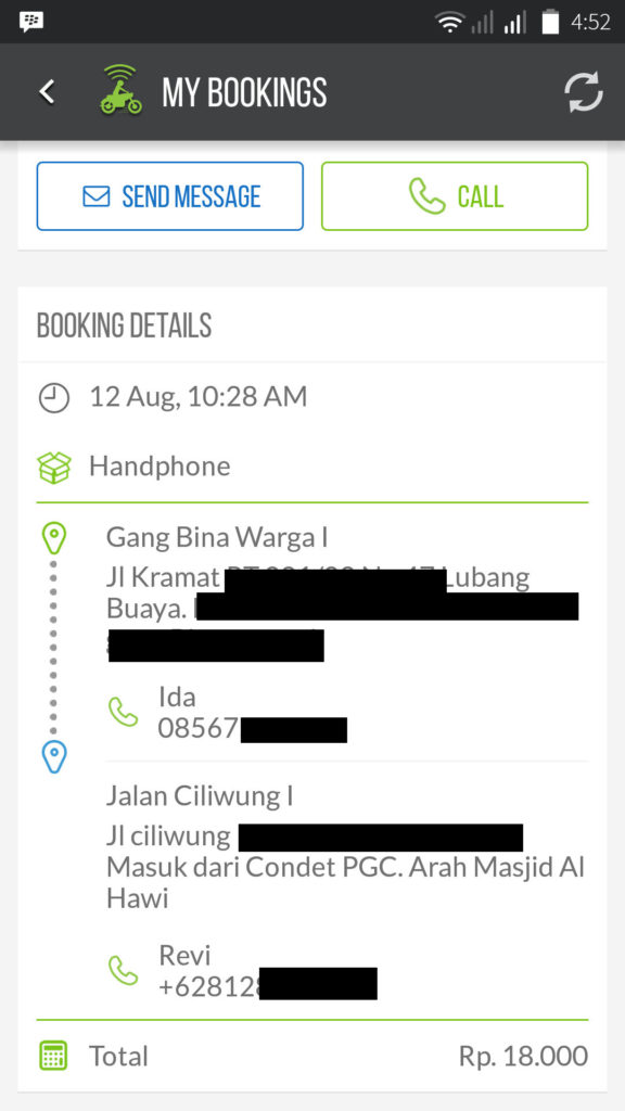 Menurut informasi yang masuk ke redaksi, kejadian ini berawal saat pengguna berinisial IF ingin mengirimkan barang berupa ponsel via layanan Go-Send. Order diterima pukul 10.28 WIB dengan rute dari Kramat Lubang Buaya ke Cililitan. Kemudian pukul 10.30 WIB pengemudi Gojek berinisial E sampai ke alamat pengirim.