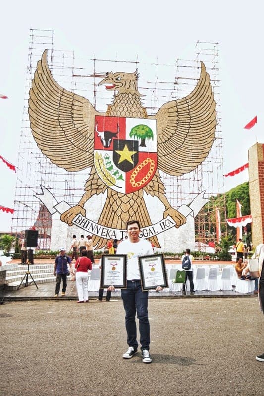 Kedua, diberikan pada ‘Fernando Uffie sebagai Penggagas atas Rekor Replika Gapura Garuda Pancasila Terbesar’.