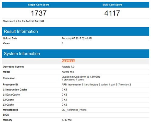 Smartphone yang beruntung itu adalah Xiaomi Mi Mix yang “tertangkap basah” hadir spesifikasi versi Android Nougat di Geekbench. Pada situs tersebut, terlihat smartphone yang mengusung desain borderless ini berjalan di versi 7.0 Nougat.