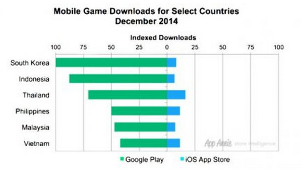 App Annie juga mencatat pertumbuhan jumlah unduhan di Google Play Store jauh meninggalkan Apple App Store, dan merata di lima negara di kawasan ASEAN, yakni Indonesia Thailanda, Filipina, Malaysia, dan Vietnam.