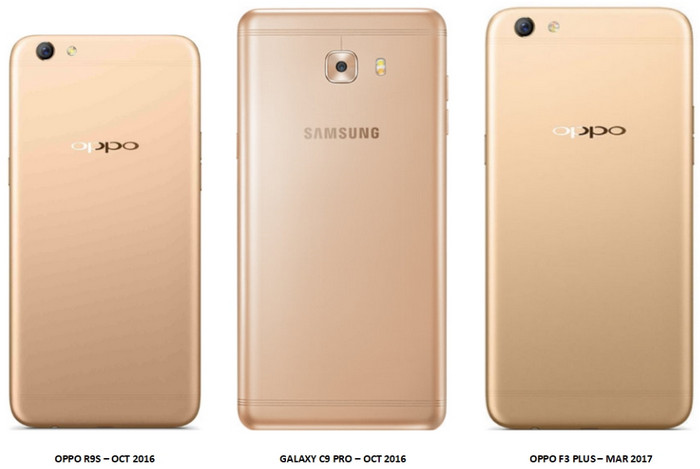 Yang agak membingungkan, enam garis antenna ini juga digunakan Samsung Galaxy C9 Pro, seri smartphone yang pertama diluncurkan untuk negara China, yang kemudian juga masuk ke Indonesia. Jika melihat timele-nya, baik Oppo R9s dan Samsung Galaxy C9 Pro diumumkan di waktu yang sama, Oktober 2016. Jadi sebenarnya ide siapa 6 garis antenna ini?