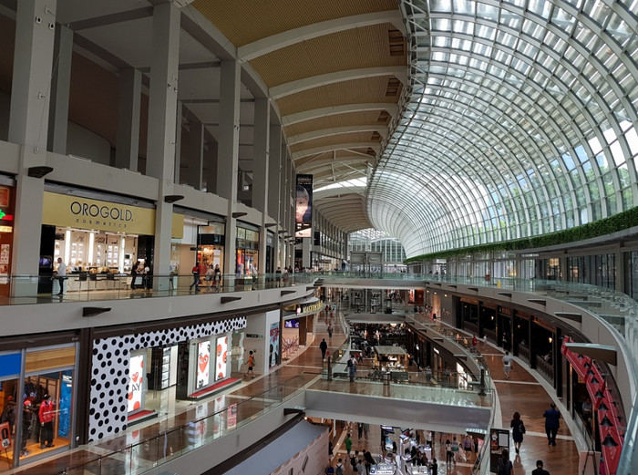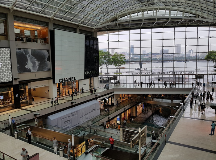 Kalau jalan-jalan ke mall, biasanya kita juga sering mengambil foto, apalagi mall-nya menarik dan unik. The Shoppes, Marina Bay Sands Singapura merupakan yang unik dari sisi arsitektur karena banyak menggunakan pencahayaan alami dari bukaan di atap dan jendela-jendela besar menghadap teluk.