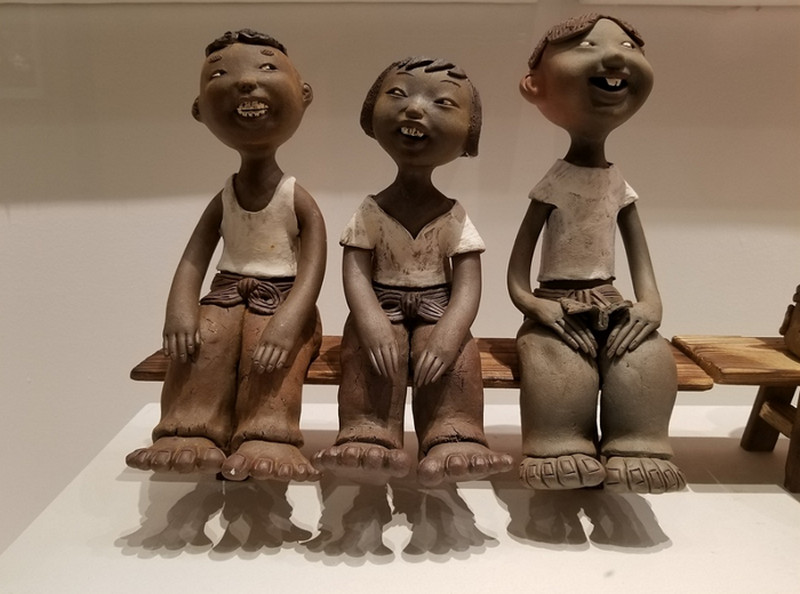 Ini patung clay yang dipamerkan di art gallery Raffles City, di foto dari balik kaca.
