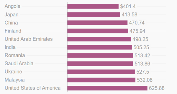 Setelah Angola, negara kedua yang memiliki harga murah untuk iPhone adalah Jepang dengan harga USD 413 atau sekitar Rp 5,5 jutaan, kemudian diikuti oleh China dengan harga USD 470 atau sekitar Rp 6,2 jutaan, Finlandia dengan harga USD 475 atau Rp 6,3 jutaan dan UAE dengan harga USD 498 atau sekitar Rp 6,6 jutaan.