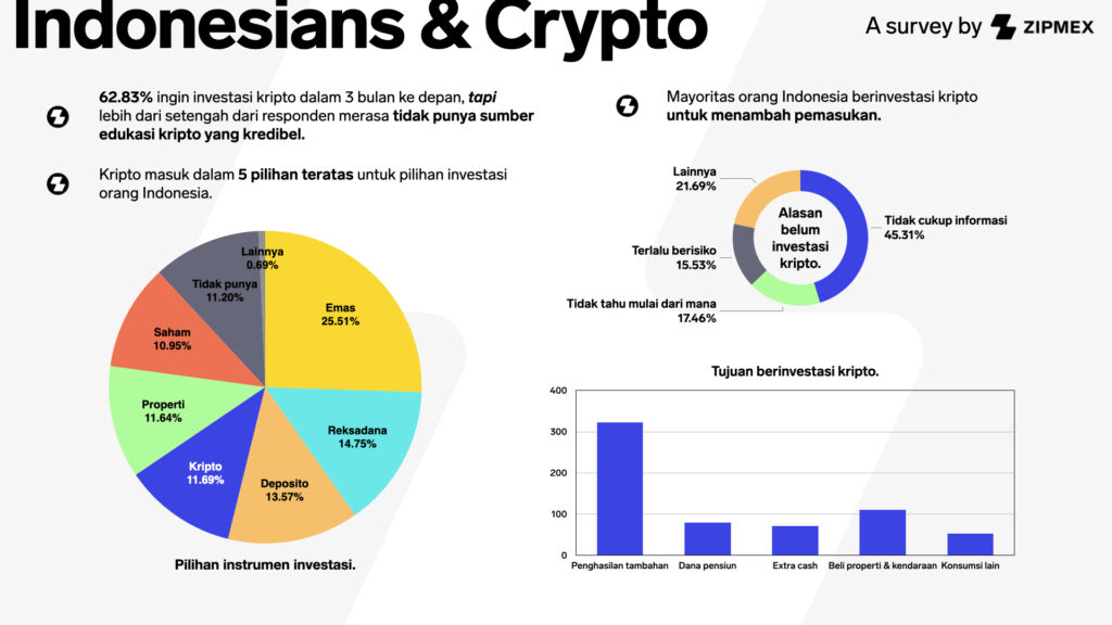 Zipmex, salah satu aplikasi kripto di Asia Tenggara, bersama dengan firma riset pasar Jakpat melakukan survei dan mengonfirmasi bahwa tren aset kripto juga terjadi di Indonesia.