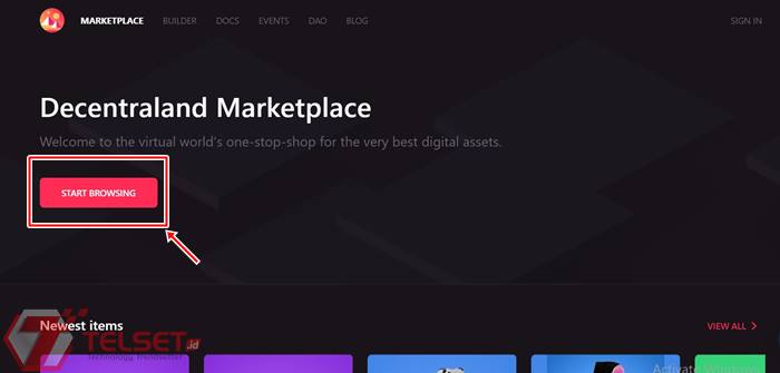 - Masuk ke situs market.decentraland.org. dan klik Start Browsing.