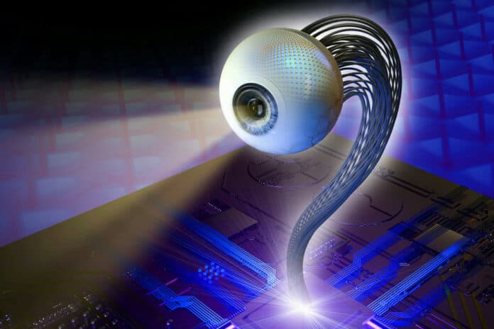 Gambar dikonversi melalui sensor kecil yang mencerminkan sel fotoreseptor pendeteksi cahaya. Sensor-sensor tersebut dikemas ke dalam membran aluminium dan berbentuk tungsten menjadi setengah bola, meniru retina.