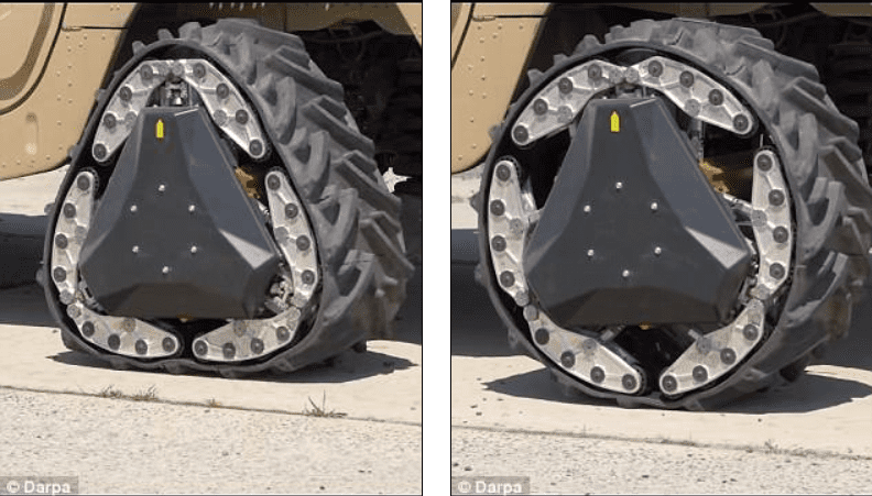 Yang paling menarik, X-Vehicle punya roda yang mampu berubah dari ban biasa menjadi roda berbentuk segitiga, layaknya roda Transformer.
