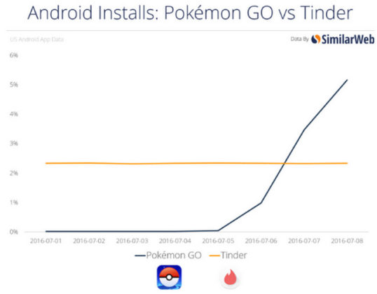 Kepopuleran Pokemon Go dapat tergambar dalam laporan terbaru perusahaan analis SimilarWeb. Menurut catatan SimilarWeb, sekitar 5,16% pengguna smartphone Android di Amerika Serikat sudah mengunduh game Pokemon Go sejak tanggal 8 Juli atau dua hari setelah perilisan resminya.