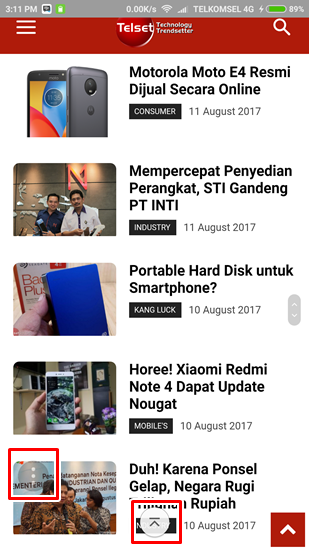 Yang menarik, ketika kita scroll satu halaman sampai bawah, akan terdapat tombol popup yang memungkinkan halaman langsung scroll otomatis ke atas.