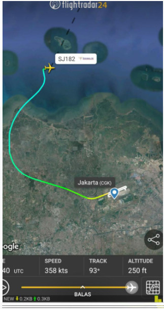 Sementara itu, tim Telset coba melihat keberadaan pesawat tersebut dengan menggunakan aplikasi Flight Radar24, dan pesawat Sriwijaya Air dengan nomor penerbangan SJY-182 itu bisa terpantau.