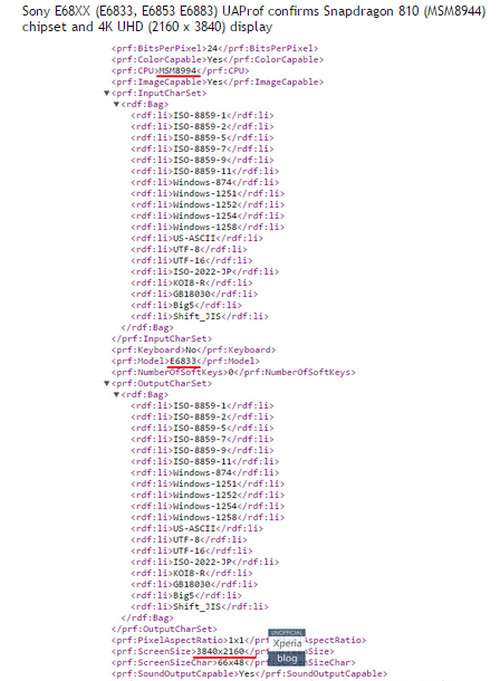 UAProf juga menunjukkan handset Sony ini akan menjalankan chipset Qualcomm Snapdragon 810 (MSM8944), sejalan dengan apa yang diharapkan untuk Xperia Z5 dan Z5 Compact.