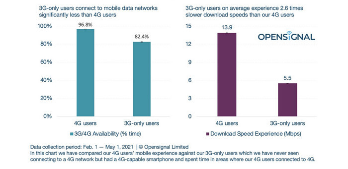Sekitar 10,9% dari 3G-only users memiliki smartphone 4G, tetapi pengguna menghabiskan waktu di area yang tidak terjangkau jaringan 4G dari operator seluler mereka. Artinya, pengguna tidak memakai 4G karena area mereka tidak terjangkau oleh 4G.