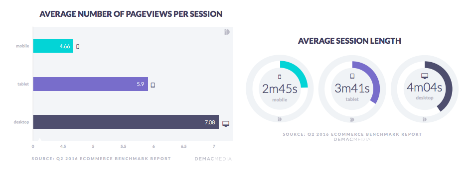 Sedangkan untuk pembelanja online yang menggunakan PC memiliki panjang sesi rata-rata lebih dari empat menit. Pengguna tablet hanya menghabiskan 20 detik lebih sedikit untuk setiap sesinya. Untuk pengguna smartphone, hanya kurang dari satu menit per sesinya dibandingkan pengguna tablet.