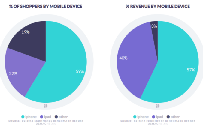 Demac Media juga menyebutkan, bahwa dalam periode tiga bulan ini, 81% dari semua pembeli yang menggunakan ponsel, semuanya merupakan perangkat iOS (59% iPhone dan 22% iPad).