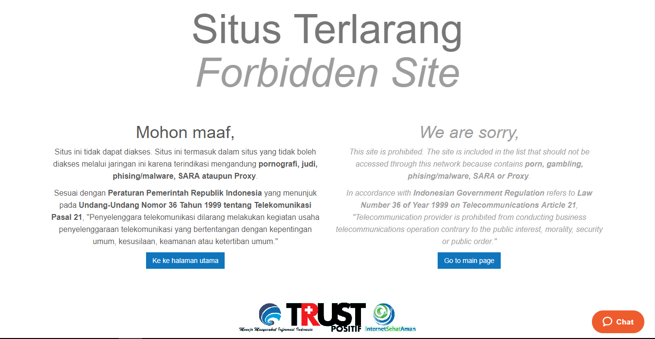 Menurut pantauan tim Telset.id, saat membuka situs tersebut, kami diarahkan ke laman Trust Positif.