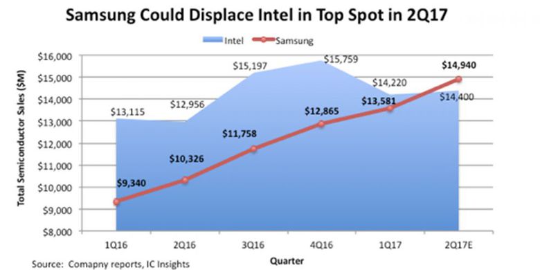 Menurut IC Insight, bisnis chipset DRAM dan memori flash NAND besutan Samsung mengalami kenaikan yang drastis. Masing-masing bisnis tersebut ditaksir akan mengalami kenaikan sekitar 39 persen dan 25 persen pada kuartal kedua 2017.
