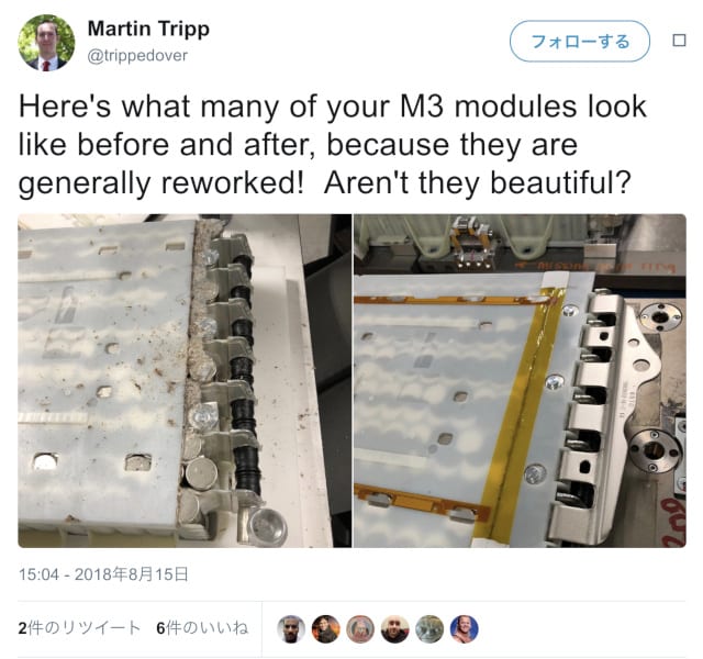 Via akun Twitter, Tripp mengobral gambar-gambar baterai mobil rusak serta praktik cacat di Tesla. Opini publik semakin kuat tatkala Tripp menyertakan foto-foto nomor identifikasi kendaraan yang mendapatkan sel baterai rusak dan bocor.