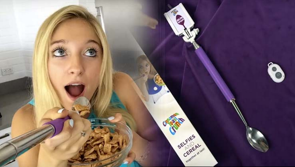 Aksesoris ini cocok untuk mereka yang sering bingung cara mengambil foto selfie ketika sedang bersantap makanan di restoran sendirian dengan pasangan atau teman-temannya. Inilah solusi dari Cinnamon Toast Crunch untuk para penggemar selfie.