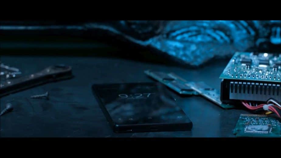 Smartphone itu tampak punya fitur yang mengesankan, salah satunya adalah mudahnya smartphone untuk meretas sistem komputer, dan menampilkan informasi rahasia pada monitor di ruang persidangan saat Tony Stark berhadapan dengan Justin Hammer, pimpinan dari Hammer Industries, pesaing Stark Industries.