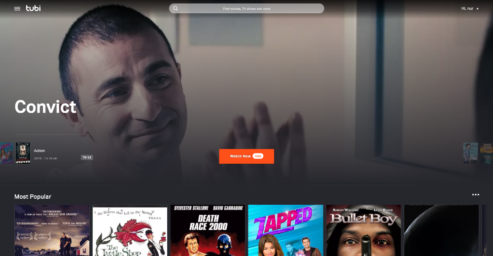 Situs kedua yang menyediakan layanan film gratis adalah Tubi. Di dalam situs ini, terdapat banyak film atau serial TV yang cukup populer di kalangan masyarakat dunia.