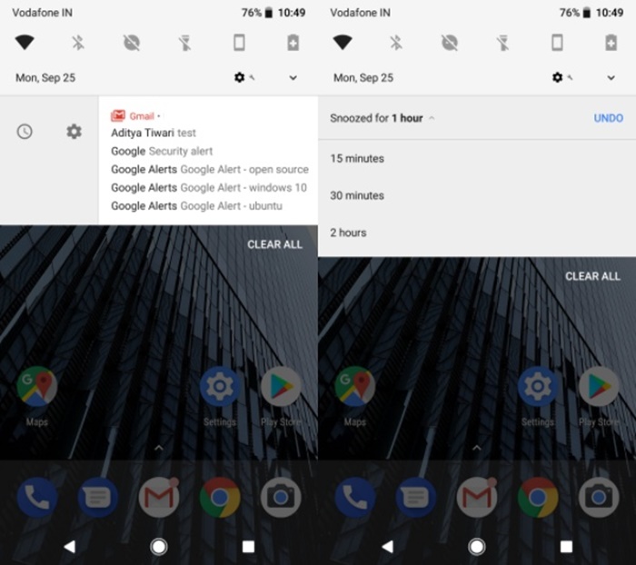Caranya pun sangat mudah, ketika notifikasi muncul, swipe notifikasi tersebut ke kanan hingga muncul ikon Settings dan juga Snoozed. Nah pilih ikon Snoozed untuk menghentikan sementara notifikasi pada smartphone.