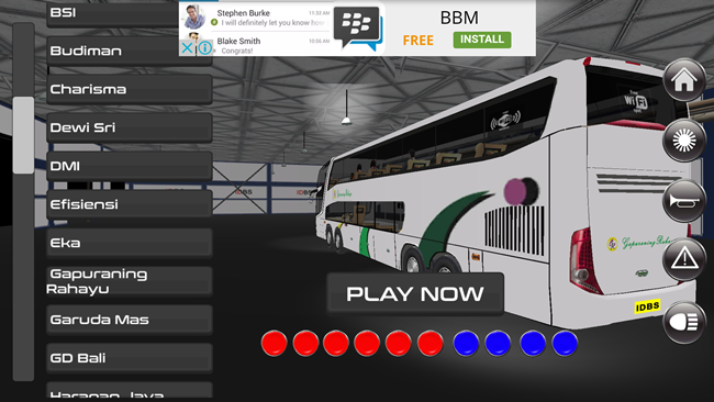 Jika Anda ingin merasakan sensasi menjadi supir bus yang memiliki klakson telolet, Anda bisa mencoba game IDBS Bus Simulator. Di dalamnya terdapat banyak sekali perusahaan bus AKAP atau AKDP yang biasa kita lihat. Bahkan ada dua jenis bus yang disediakan oleh aplikasi ini yakni Super High Deck dan Double Decker. Layaknya sebuah simulator bus, kita bisa merasakan sensasi sebagai supir bus karena adanya opsi pilihan kamera dari dashboard bus.