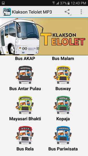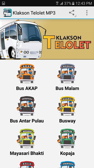 Aplikasi ini bernama Klakson Telolet MP3 yang memiliki 8 varian bus dengan klakson telolet yang berbeda dari bus AKAP, bus malam, hingga bus pariwisata. Cara untuk mendengarkan klakson dari masing-masing jenis bus sangat mudah kok. Anda hanya harus memilih jenis dari bus tersebut, nah nantinya akan muncul berbagai klakson khas dari bus tersebut. Tekan saja salah satu klakson tersebut, dan suara telolet pun akan terdengar.