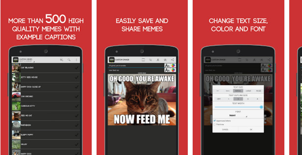 Salah satu aplikasi generator meme yang lebih bergaya. Yang ini terlihat bagus dan mudah digunakan. Aplikasi ini hadir dengan editor WYSIWYG real-time yang memungkinkan Anda melihat bagaimana meme Anda akan terlihat seperti Anda membuatnya sehingga Anda dapat memperbaiki kesalahan dengan cepat. Ini berisi lebih dari 5000 template meme. Anda juga dapat membuat foto sendiri di galeri perangkat Anda. Ini sama bagusnya dengan yang didapatnya.
