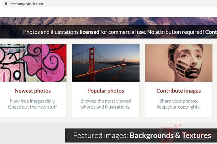 Freerange Stock adalah situs yang menyediakan gambar atau foto-foto tanpa hak cipta. Situs ini berbasis komunitas, dimana para fotografer ataupun desainer grafis menunggah foto-foto mereka. Beragam kategori foto tersedia secara gratis dan dapat digunakan untuk kebutuhan apapun. Asalkan anda tidak menjual foto/gambar di situs ini sebagai hasil karya.