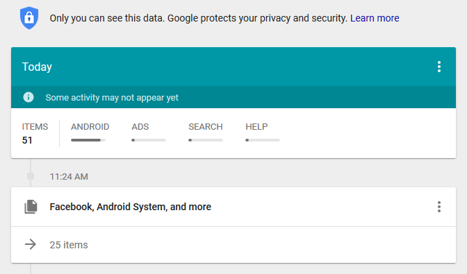 Google juga menyediakan situs yang memudahkan pengguna untuk melihat aktivitas mereka ketika menggunakan perangkat Android dan browser Google Chrome, hingga ketika mencari informasi dalam satu tempat.