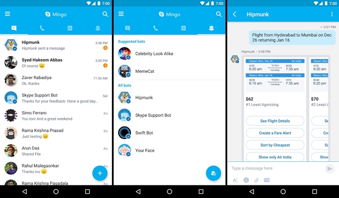 Selanjutnya ada Skype Mingo yang dibuat oleh developer Skype yang memiliki banyak sekali kegunaan. Aplikasi ini memungkinkan penggunanya untuk menggabungkan semua platform komunikasi seperti SMS, panggilan telepon, Skype (tentunya), dan lainnya dalam satu tempat. Keunggulan dari Mingo adalah banyaknya bot yang mampu membantu penggunanya untuk mengatur hari-harinya dengan mudah. Namun sayangnya, Skype Mingo hanya dapat di-download dengan jumlah terbatas dan kemungkinan besar kuota download sudah penuh di Google Play Store.