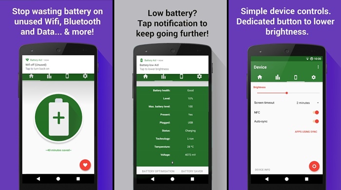 Terakhir ada Battery Aid 2 yang memungkinkan penggunanya untuk memberi “kekuatan lebih” pada baterai smartphone Androidnya dengan memberikan fitur battery-saving yang benar-benar bekerja dengan baik pada baterai smartphone. Battery Aid 2 juga mampu membuat baterai smartphone Android penggunanya untuk memiliki daya tahan yang lebih baik agar tidak cepat habis. Keunggulan dari aplikasi ini sebenarnya adalah membuat tingkat efektivitas dari baterai smartphone menjadi lebih baik dan itu benar-benar terbukti.