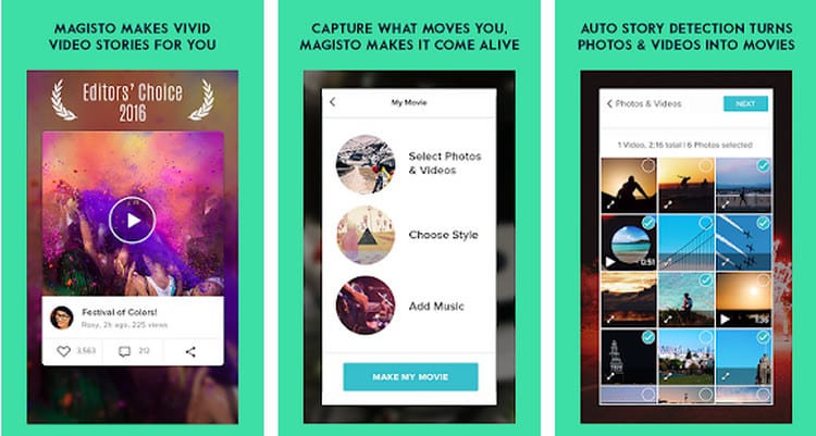 Mirip dengan Quik, Magisto adalah aplikasi video editing yang instan, sehingga sangat mudah untuk digunakan bagi Anda yang tidak ingin repot-repot. Aplikasi ini memiliki beragam pilihan teks, filter video, dan efek video yang bisa membuat video Anda lebih menarik. Jadi yang perlu Anda lakukan adalah cukup pilih video dan foto yang ingin Anda edit, dan aplikasi ini akan melakukannya untuk Anda. Jangan lupa untuk memasukkan musik yang menarik. Aplikasi ini dapat diunduh secara gratis, namun juga menyediakan filter, efek, dan musik tambahan yang bisa dibeli.