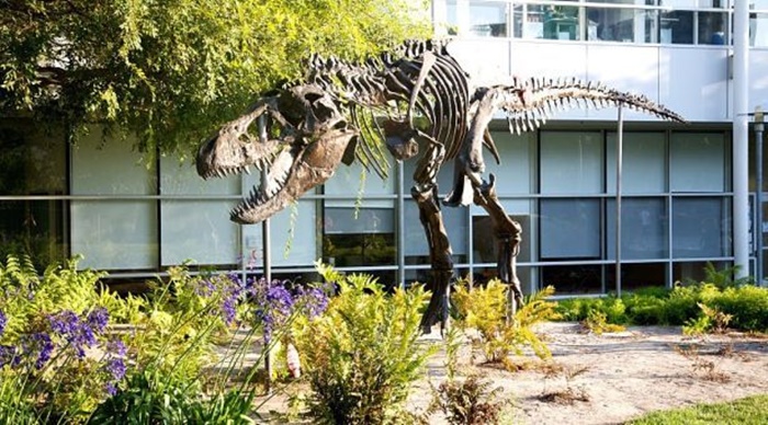 Jika Anda sedang berselancar di dunia maya menggunakan Google Chrome dan tiba-tiba koneksi itnernet terputus, maka otomatis akan muncul game “menyeramkan” bagi para netizen yang memperlihatkan seekor T-rex yag harus menghindari berbagai rintangan di depannya untuk meraih skor tertinggi hingga akhirnya koneksi internet terhubung kembali. Nah mungkin game menarik dari Google tersebut diilhami oleh adanya kerangka T-rex yang ada di halaman Googleplex. T-rex tersebut diberinama “Stan” yag menjadi hiasan menarik menemani patung-patung Android yang ada di halaman Googleplex. Ide menarik Google untuk membuat karyawannya betah memang “out of the box” ya!