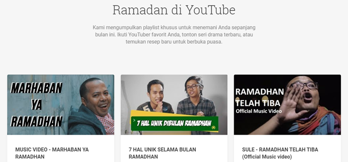 Giliran YouTube yang menghadirkan fitur baru di bulan Ramadhan ini. FItur tersebut adalah YouTube Ramadan Shelf yang memungkinkan penggunanya mendapatkan konten-konten yang berkaitan dengan momen-momen Ramadhan.