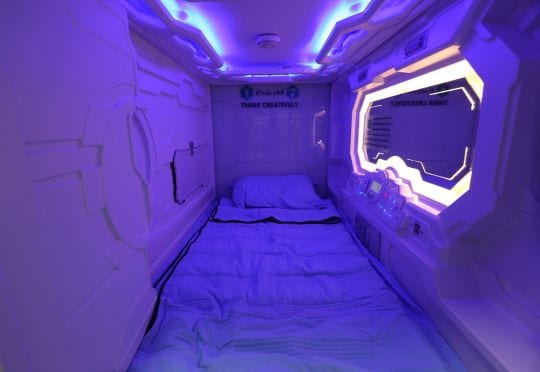 Dilaporkan, kapsul tidur tersebut sedang diuji pihak Arab Saudi di wilayah Kota Mina sebelah barat. Kapsul tidur ini berbahan fiberglass dan memiliki panjang sekitar tiga meter. Di dalamnya terdapat kasur, alas tidur yang bersih, AC dan cermin yang menyala di dinding.