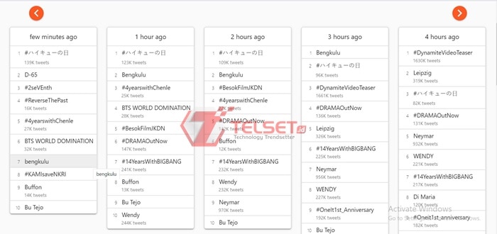 Berdasarkan pantauan Tim Telset.id dari Trends24.in pada Rabu (19/08/2020) kata Bengkulu berada di peringkat ketujuh sehingga cukup banyak netizen yang membicarakan gempa Bengkulu di media sosial Twitter.